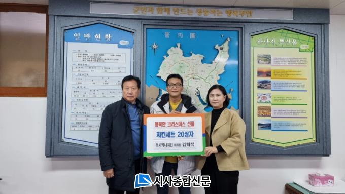 [½Ã»çÁ¾ÇսŹ® = ¿À½ÂÅà ±âÀÚ] ¹«¾È±º ÇØÁ¦¸é ¾ç°£Ãµº¯¿¡ À§Ä¡ÇÑ ¸Æ½ÃÄ«³ªÄ¡Å²(´ëÇ¥ ±èÇϼ®)ÀÌ Áö³ 20ÀÏ ¼ºÅºÀýÀ» ¸Â¾Æ ÇѺθð, Á¶¼Õ°¡Á¤ 15¼¼´ë¿¡°Ô ġŲ¼±¹°¼¼Æ® 20»óÀÚ(40¸¸ ¿ø»ó´ç)¸¦ Àü´ÞÇß´Ù.