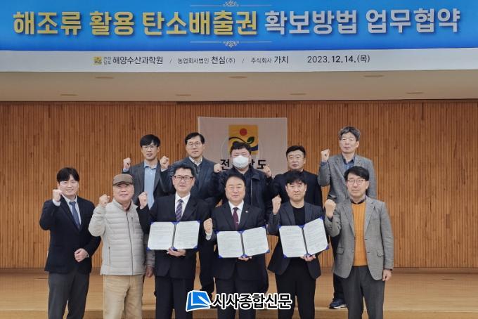 ÀÌ¿¡ Àü³²µµ´Â µÎ ±â¾÷°ú ¼ÕÀâ°í ¹ü±¹°¡Àû °úÁ¦ÀÎ ÇØÁ¶¸¦ Ȱ¿ëÇÑ Åº¼Ò¹èÃâ±Ç È®º¸¸¦ À§ÇÑ °ü·Ã ¿¬±¸¿¡ ÁýÁßÇÒ °èȹÀÌ´Ù. Çù¾à¿¡ µû¶ó Àü³²Çؾç¼ö»ê°úÇпøÀº ÇØÁ¶ Ȱ¿ë ź¼Ò¹èÃâ±Ç È®º¸ ¹æ¹ý¿¬±¸¿Í ºí·çÄ«º» °³¹ß, Àü³² ¼ö»ê¾÷ ¹ßÀüÀ» À§ÇÑ ÇØÁ¶¾ç½Ä ¹× ¹Ù´Ù½£ Á¶¼º, Á¾ÀÚ»ý»ê ±â¼ú°³¹ß µî ¿¬±¸¿¡ Àû±Ø Çù·ÂŰ·Î Çß´Ù.
