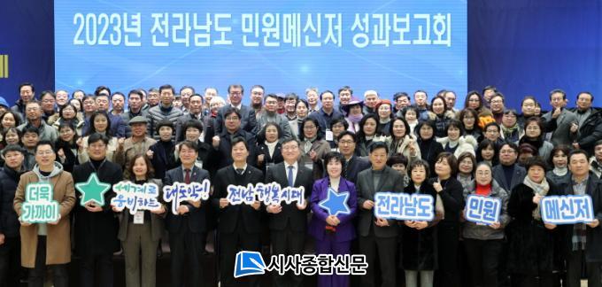 ¼º°úº¸°íȸ¿¡¼± ¸íâȯ Àü³²µµ ÇàÁ¤ºÎÁö»ç, ¼µ¿¿í Àü³²µµÀÇȸ ÀÇÀå, ¹Î¿ø¸Þ½ÅÀú µî 200¿© ¸íÀÌ Âü¼®ÇÑ °¡¿îµ¥ ¿Ã ÇÑ ÇØ µµ¹ÎÀÇ °íÃæ¡¤ºÒÆí ÇØ¼Ò¸¦ À§ÇØ È°µ¿ÇÑ ¹Î¿ø¸Þ½ÅÀúÀÇ ´«ºÎ½Å ¼º°ú¸¦ °øÀ¯ÇÏ°í °Ý·ÁÇß´Ù.¶ÇÇÑ ¿ì¼öȰµ¿ ¸Þ½ÅÀú 25¸í°ú ½Ã±º ¿ì¼ö °ø¹«¿ø 3¸íÀÇ ¼ö»óÀÚ¸¦ ÃàÇÏÇÏ°í °Ý·ÁÇÏ¸é¼ °ø°¨¡¤¼ÒÅëÀÇ ½Ã°£À» °¡Á³´Ù. ƯÈ÷ °áÀǹ® ³¶µ¶À» ÅëÇØ ¹Î¿ø¸Þ½ÅÀú°¡ Áö¼ÓÇØ¼ µµ¹Î ÁÖµµÇü °ø°¨ ¼ÒÅë ä³Î ¿ªÇÒ°ú Ã¥ÀÓÀ» ´ÙÇÒ °ÍÀ» ´ÙÁüÇß´Ù.