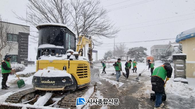 ¸é¼ÒÀçÁö¿¡ ½×ÀÎ ´«À» Ä¡¿ì±â À§ÇØ ±¼»è±â 3´ë¸¦ ÅõÀÔÇÏ°í ¿°ÈÄ®½·À» »Ñ·Á Á¦¼³ÀÛ¾÷À» ½Ç½ÃÇϰí, °¢ ¸¶À» ¾È±æ°ú À̸鵵·Î Á¦¼³¿¡´Â ÀÚÀ²¹æÀç´ÜÀÇ Æ®·¢ÅÍ 10¿© ´ë°¡ ÅõÀԵƴÙ.