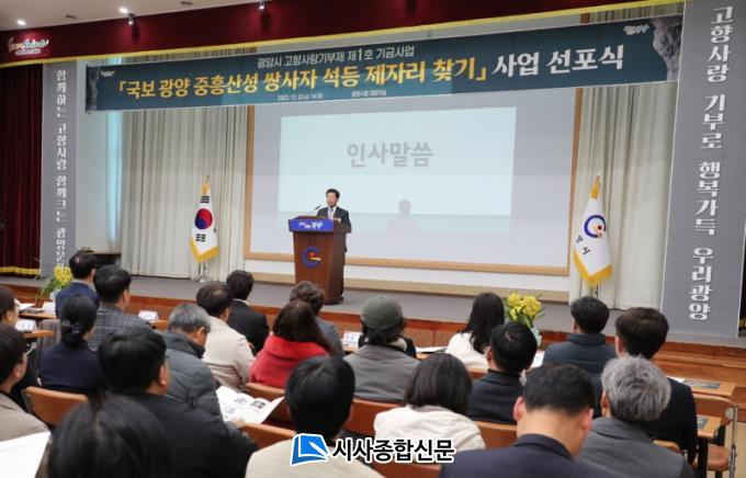 ½Ã´Â ½Ã¹ÎµéÀÇ ¹®ÈÀû ÀÚÁ¸°¨À» ȸº¹ÇÏ°í ¹®ÈÀ¯»êÀ» ü°èÀûÀ¸·Î °ü¸®ÇÏ´Â °è±â¸¦ ¸¶·ÃÇϸç À¯ÀϹ«ÀÌÇÑ ±¹º¸ÀÎ ±¤¾ç ÁßÈï»ê¼º ½Ö»çÀÚ ¼®µîÀÌ ½Ã¹ÎÀÇ Ç°À¸·Î µ¹¾Æ¿Ã ¼ö ÀÖµµ·Ï Áö³ 10¿ù Á¦3Â÷ °íÇâ»ç¶û±â±Ý¿î¿ë½ÉÀÇÀ§¿øÈ¸¿¡¼ ¡¸±¹º¸ ±¤¾ç ÁßÈï»ê¼º ½Ö»çÀÚ ¼®µî Á¦ÀÚ¸® ã±â¡¹»ç¾÷À» Á¦1È£ °íÇâ»ç¶û ±â±Ý»ç¾÷À¸·Î ´Üµ¶ ¼±Á¤Çß´Ù.