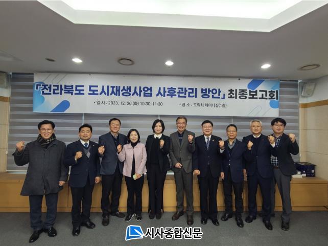 Àü¶óºÏµµÀÇȸ µµ½ÃÀç»ý¿¬±¸È¸´Â ´ëÇ¥ À±¿µ¼÷ ÀÇ¿ø, ¿¬±¸Ã¥ÀÓ ±èÁ¤¼ö ÀÇ¿ø, ȸ¿ø À̺´µµ ÀÇ¿ø, ÀÌ¸í¿¬ ÀÇ¿ø, ¹®½Â¿ì ÀÇ¿ø, À±¼öºÀ ÀÇ¿ø, ±èÁ¤±â ÀÇ¿ø, À̼öÁø ÀÇ¿øÀ¸·Î ±¸¼ºµÇ¾î Áö³ 2¿ùºÎÅÍ ¿ÃÇØ ¸»±îÁö ¿î¿µ ÁßÀÌ´Ù.