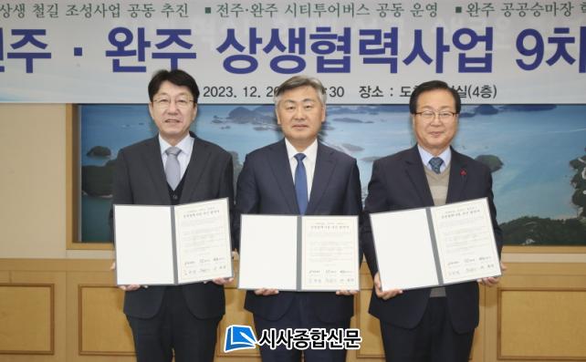 ÀüºÏµµ´Â 26ÀÏ µµÃ» ȸÀǽǿ¡¼ ±è°ü¿µ µµÁö»ç¸¦ ºñ·ÔÇØ ¿ì¹ü±â ÀüÁÖ½ÃÀå°ú À¯ÈñÅ ¿ÏÁÖ±º¼ö°¡ Âü¼®ÇÑ °¡¿îµ¥ ¡®ÀüÁÖ¡¤¿ÏÁÖ »ó»ýÇù·Â»ç¾÷ 9Â÷ Çù¾à½Ä¡¯À» °¡Á³´Ù°í ¹àÇû´Ù. À̹ø 9Â÷ Çù¾à¿¡¼ ÃßÁøÇϱâ·Î ÇÑ »ç¾÷Àº ¸ÕÀú ¡®¿ÏÁÖ¡¤ÀüÁÖ »ó»ýö±æ Á¶¼º¡¯ »ç¾÷ °øµ¿ÃßÁøÀÌ´Ù.