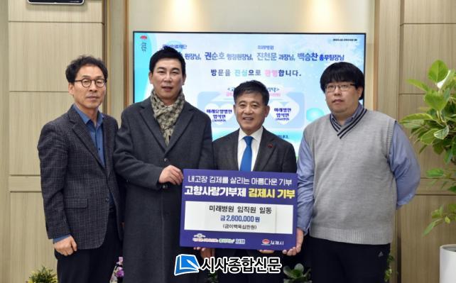 | ±èÁ¦Áö¿ª ÀÇ·áÀεé, °íÇâ»ç¶û±âºÎ±Ý 824¸¸¿ø ±âŹ(¹Ì·¡º´¿øÀÓÁ÷¿øµî) |