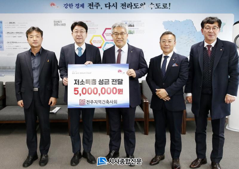 [½Ã»çÁ¾ÇսŹ® = ±è¿¬Èñ ±âÀÚ] ÀüÁÖÁö¿ª °ÇÃà»çȸ(ȸÀå À̼º¿)´Â 27ÀÏ ¿¬¸»¿¬½Ã¸¦ ¸Â¾Æ ºÒ¿ìÀÌ¿ôÀ» µ½±â À§ÇÑ »ç¶ûÀÇ ¼º±Ý 500¸¸ ¿øÀ» ÀüÁֽÿ¡ Àü´ÞÇß´Ù.
