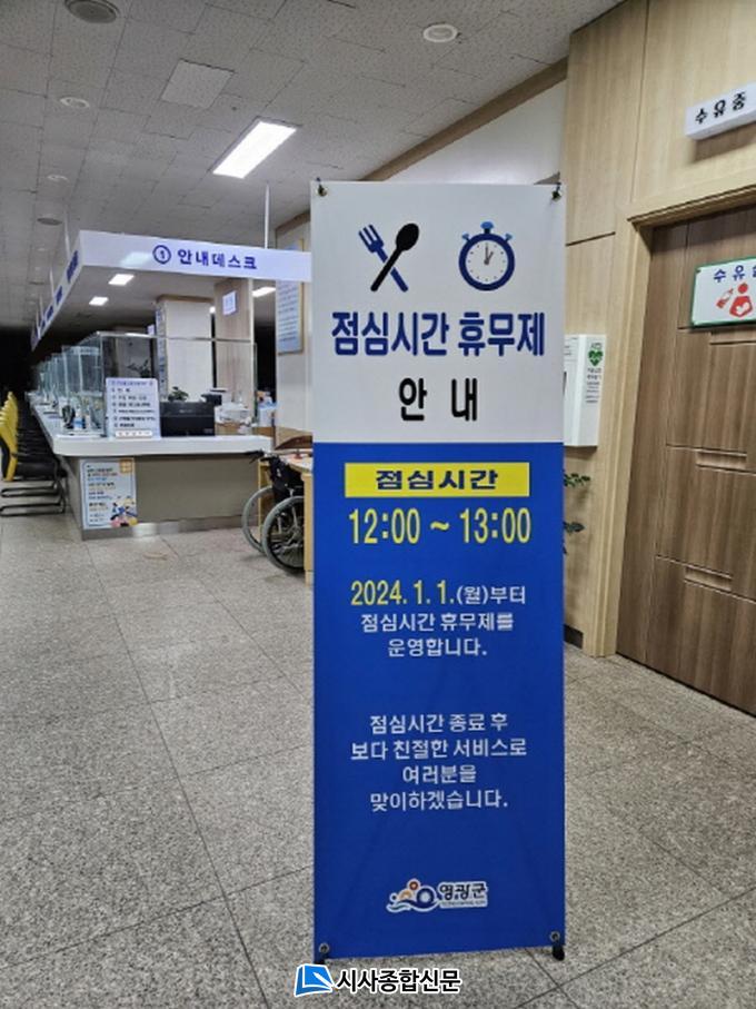¿µ±¤±ºÀº ¹Î¿ø¾÷¹« ´ã´çÀÚ ÈްԽð£À» º¸ÀåÇÏ°í ¾÷¹« È¿À²¼ºÀ» ³ôÀ̱â À§ÇØ Áö³ 10¿ù ¡¸¿µ±¤±º ¹Î¿ø½ÇÀÇ ¼³Ä¡ ¹× ¿î¿µ¿¡ °üÇÑ Á¶·Ê¡¹¸¦ Á¦Á¤Çϰí 12¿ù ÇÑ ´Þ°£ ÁýÁß È«º¸ ±â°£À» °ÅÃÄ ±º Á¾Çչοø½ÇÀ» ºñ·ÔÇÑ 11°³ À¾¸é»ç¹«¼ÒÀÇ Á¡½É½Ã°£(¿ÀÈÄ 12¡1½Ã) ÈÞ¹«Á¦¸¦ º»°Ý ½ÃÇàÇÑ´Ù.
