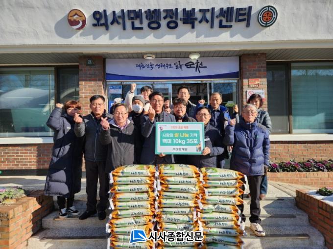 ¿Ü¼¸é ÇàÁ¤º¹Áö¼¾ÅÍ¿¡ µû¸£¸é Áö³ 22ÀÏ ¢ß´ëµ¿°³¹ß(´ëÇ¥ ±èµ¿±â)¿¡¼ ¾î·Á¿î ÀÌ¿ô¿¡°Ô Àü´ÞÇØ ´Þ¶ó¸ç ½Ò 10kg 35Æ÷´ë(100¸¸ ¿ø »ó´ç)ÀÇ ±âºÎ¸¦ ½ÃÀÛÀ¸·Î, 27ÀÏ¿¡´Â (Àü)¼øÃµÀç°æÇâ¿ìȸ ±è¼®Áø ȸÀå(ÇѹéÅë»ó ´ëÇ¥)ÀÌ °úÀÚ ²Ù·¯¹Ì 100¹Ú½º¸¦ °¢°¢ ±âºÎÇß´Ù°í ÀüÇß´Ù.