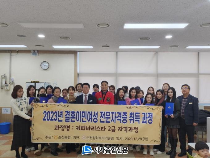 °áÈ¥À̹ο©¼ºÀÇ Àü¹® ÀÚ°ÝÁõ ÃëµæÁö¿øÀ¸·Î »õ·Î¿î Á÷¾÷ ±âȸ¸¦ Á¦°øÇÏ°í ´Ù¹®È°¡Á·ÀÇ ³ó¿Ü¼Òµæ Áõ´ë·Î °æÁ¦Àû ¾ÈÁ¤À» µµ¸ðÇϰíÀÚ 2022³â Çù¾àÀ» ÅëÇØ Áö³ÇغÎÅÍ ¼øÃµ ¼ºÈ·ÎŸ¸®Å¬·´(3610Áö±¸ ·ÎŸ¸®) ÈÄ¿øÀ» ¹Þ¾Æ ¼øÃµ³óÇù¿¡¼ Á÷¾÷±³À°À» ½Ç½ÃÇØ ÃÑ 53¸íÀÇ ±³À°»ýÀÌ ¼ö·áÇÏ¿´°í ÀÚ°ÝÁõ ¶ÇÇÑ ÃëµæÇß´Ù.