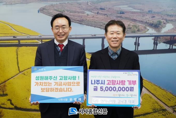±è ´ëÇ¥´Â ¡°³ªÁÖ¿¡¼ °øÀåÀ» È®ÀåÇÏ¸ç ³ªÁÖ¸¦ Á¦ 2ÀÇ °íÇâÀ¸·Î »ý°¢Çϰí ÀÖ´Ù.¡±¶ó¸ç ¡°³ªÁÖ ¹ßÀü¿¡ Á¶±ÝÀÌ¶óµµ º¸ÅÆÀÌ µÉ ¼ö ÀÖ¾î »ÑµíÇÏ´Ù. ÁÖº¯ ÁöÀεé°ú ÀÓÁ÷¿øµé¿¡°Ôµµ °íÇâ»ç¶û±âºÎÁ¦¸¦ È«º¸ÇϰڴÙ.¡±¶ó°í ÀüÇß´Ù.