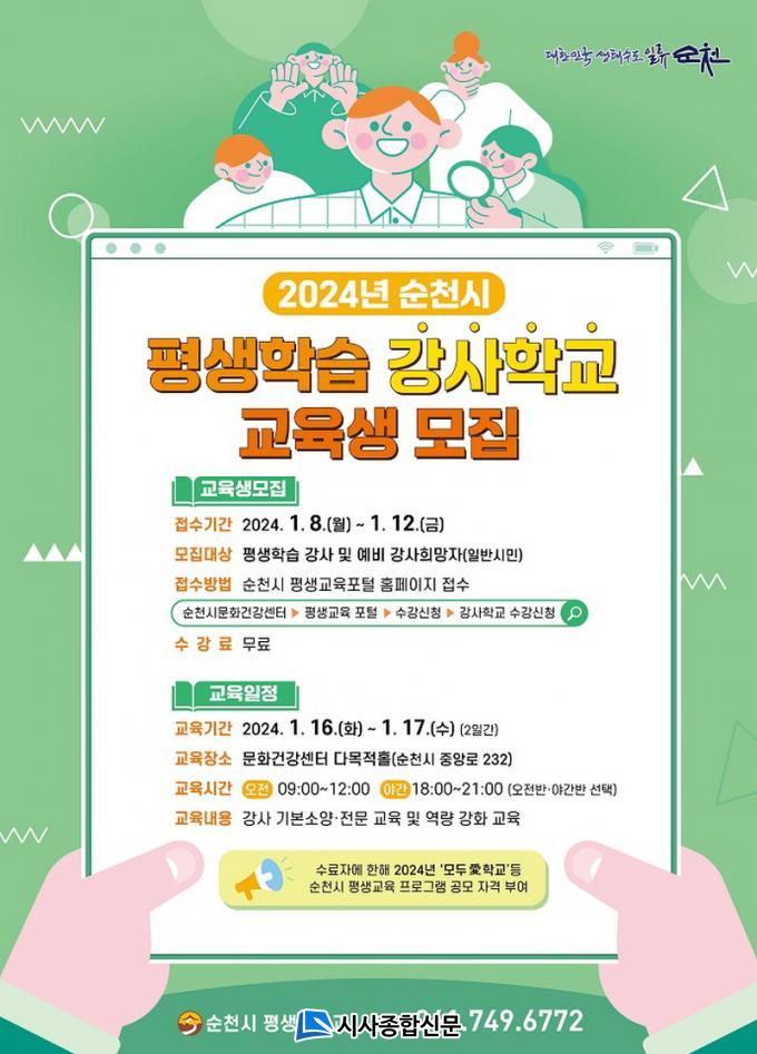 | ¼øÃµ½Ã, 2024³â Æò»ýÇнÀ °»çÇб³ ±³À°»ý ¸ðÁý |