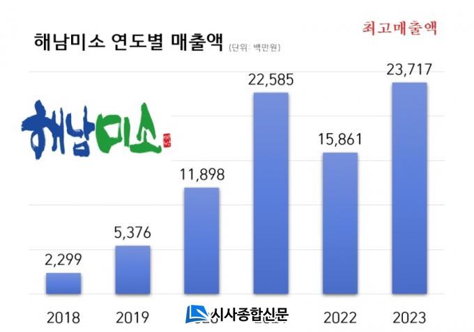 ÇØ³²±º¿¡¼ Á÷Á¢ ¿î¿µÇϰí ÀÖ´Â ÇØ³²¹Ì¼Ò´Â Áö³ 2021³â ¸ÅÃâ 200¾ï¿øÀ» óÀ½À¸·Î µ¹ÆÄÇѵ¥ À̾î 2022³â¿¡´Â 158¾ï¿©¿øÀ¸·Î ¸ÅÃâÀÌ °¨¼ÒÇßÀ¸³ª, Áö³ÇØ ´Ù½Ã 237¾ï¿©¿øÀÇ ÃÖ°í ¸ÅÃâÀ» ±â·ÏÇß´Ù.