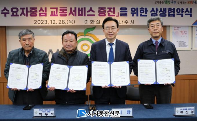 ³ªÁÖ½Ã(½ÃÀå À±º´ÅÂ)´Â Áö¿ª ¹ö½º, °³ÀΡ¤¹ýÀÎ Åýà ¾÷ü ´ëÇ¥µé°ú ¡®¼ö¿äÀÚ Á᫐ ±³Å뼺ñ½º ÁõÁø¡¯À» ¸ñÇ¥·Î ÇÑ »ó»ý Çù¾à½ÄÀ» Çß´Ù°í 4ÀÏ ¹àÇû´Ù.