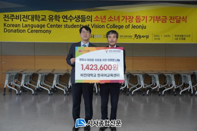 À̳¯ Àü´Þ½Ä¿¡¼´Â ÇöÀç ºñÀü´ëÇб³ Çѱ¹¾î±³À°¼¾ÅÍ¿¡¼ Çѱ¹¾î 6±Þ °úÁ¤À» °øºÎÇϰí ÀÖ´Â ¿Ü±¹ÀÎ Çлýµé°ú ±³¿øµéÀÌ 142¸¸3600¸¸ ¿øÀÇ ¼º±ÝÀ» ±âŹÇß´Ù.