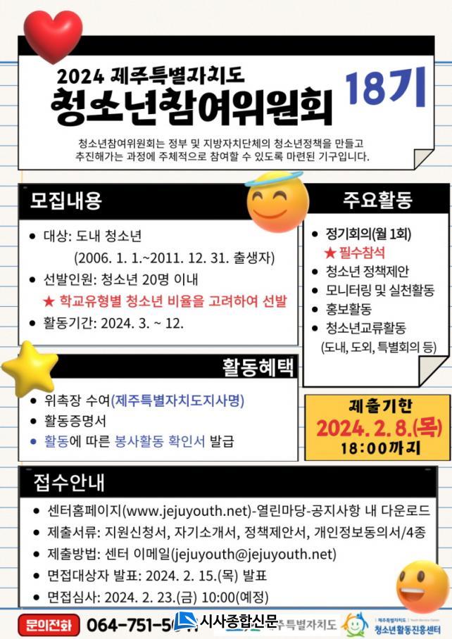 ÀÚ¼¼ÇÑ ¸ðÁý ÀÏÁ¤°ú ½Åû¹æ¹ýÀº Á¦ÁÖÆ¯º°ÀÚÄ¡µµÃ»¼Ò³âȰµ¿ÁøÈï¼¾ÅÍ È¨ÆäÀÌÁöwww.jejuyouth.net) °øÁö»çÇ׿¡¼ È®ÀÎ °¡´ÉÇÏ´Ù. µµ³» û¼Ò³âµéÀÇ ¸¹Àº °ü½É°ú Âü¿© ¹Ù¶õ´Ù.