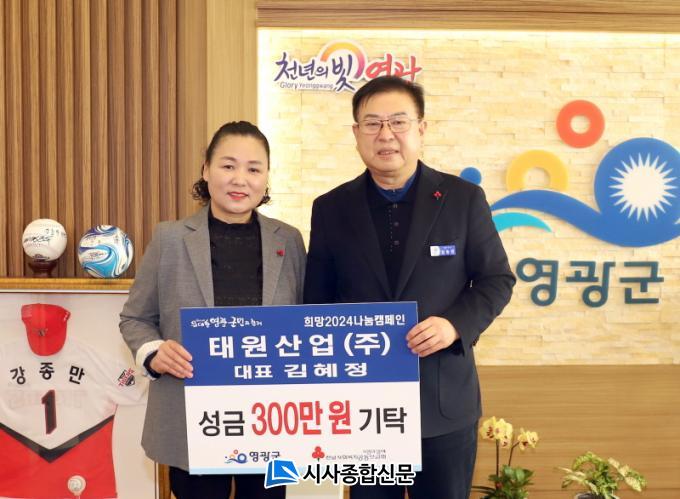 [½Ã»çÁ¾ÇսŹ® = ¿À½ÂÅà ±âÀÚ] Áö³ 10ÀÏ Å¿ø»ê¾÷(´ëÇ¥ ±èÇýÁ¤)¿¡¼´Â ¿µ±¤±º¿¡ Èñ¸Á2024³ª´®Ä·ÆäÀÎ ¼º±Ý 300¸¸ ¿øÀ» ±âŹÇÏ¿´´Ù.