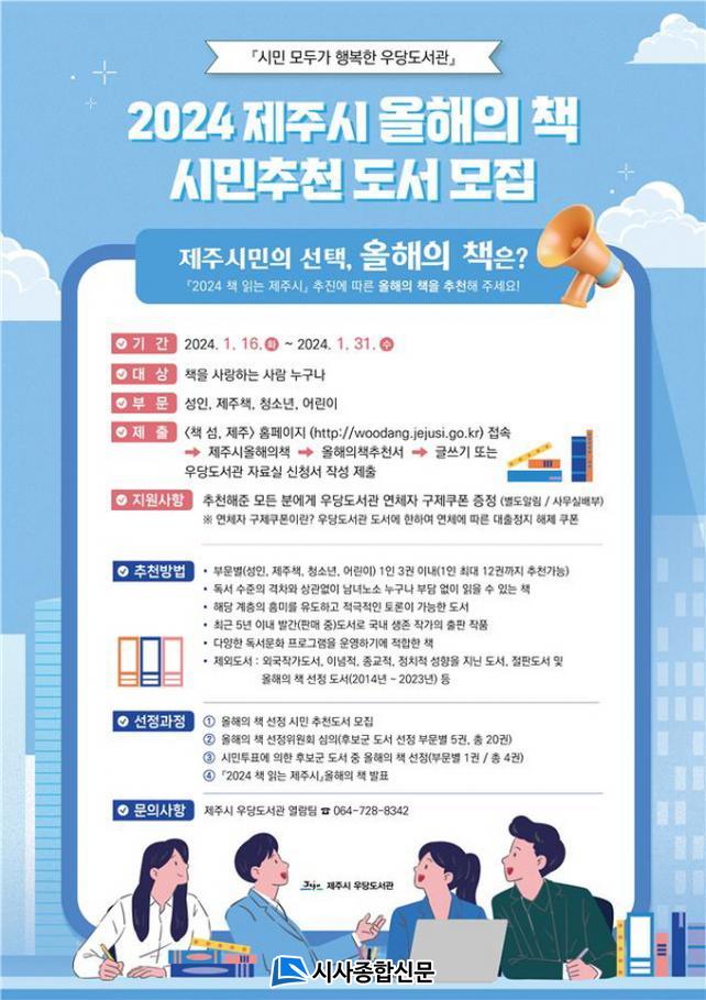 À̹ø ½Ã¹Î Ãßõ È帱º µµ¼ ¸ðÁýÀº Ã¥À» »ç¶ûÇÏ´Â ´©±¸³ª °¡´ÉÇϸç 1¿ù 16ÀϺÎÅÍ 1¿ù 31ÀϱîÁö <Ã¥ ¼¶, Á¦ÁÖ> ȨÆäÀÌÁö(http://woodang.jejusi.go.kr) ¶Ç´Â ¿ì´çµµ¼°ü ÀÚ·á½Ç¿¡ ºñÄ¡µÈ ½Åû¼¸¦ ÅëÇØ ÃßõÇÒ ¼ö ÀÖ´Ù.
