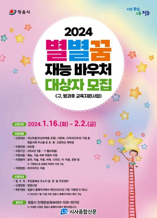 Á¤À¾½Ã´Â 16ÀϺÎÅÍ 2¿ù 2ÀϱîÁö ¡®º°º°²Þ Àç´É¹Ù¿ìó Áö¿ø »ç¾÷¡¯ ´ë»óÀÚ¸¦ ¸ðÁýÇÑ´Ù°í ¹àÇû´Ù. º°º°²Þ Àç´É¹Ù¿ìó Áö¿ø »ç¾÷Àº Á¤±Ô ±³°ú¸ñÀ¸·Î ¼±Á¤µÈ °ú¸ñÀ» Á¦¿ÜÇÑ ¹Ì¼ú, À½¾Ç, ¹«¿ë, ±â¼ú µîÀÇ Çпøºñ¸¦ Áö¿øÇÏ´Â »ç¾÷ÀÌ´Ù.