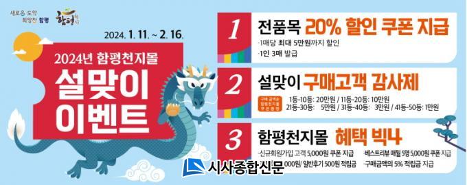 [½Ã»çÁ¾ÇսŹ® = ¿À½ÂÅà ±âÀÚ] ÇÔÆò±º ³óƯ»ê¹° ¼îÇθô ¡®ÇÔÆòõÁö¸ô¡¯¿¡¼ 1¿ù 11ÀϺÎÅÍ 2¿ù 16ÀϱîÁö ¼³¸ÂÀÌ ³ó¡¤¼ö¡¤Ãà»ê¹° Àü »óǰÀ» 20% ÇÒÀÎ ÄíÆù ¹ß±ÞÀ» ÅëÇØ ÃÖ´ë 5¸¸¿ø±îÁö ÇÒÀÎ ¹ÞÀ» ¼ö ÀÖ´Â À̺¥Æ®¸¦ ÁøÇàÇÑ´Ù.