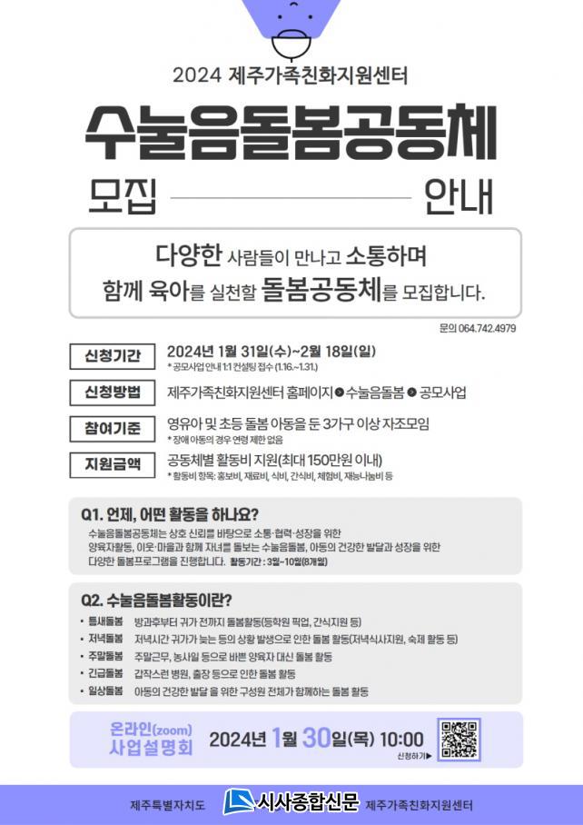 °¹®½Ç Á¦ÁÖ°¡Á·Ä£ÈÁö¿ø¼¾ÅÍÀåÀº ¡°Á¦ÁÖÁö¿ª ¾çÀ°ÀÚµéÀÌ ¾çÀ°Á¤º¸¸¦ °øÀ¯Çϰí ÀÌ¿ô°ú ÇÔ²² Àڳฦ µ¹º¸´Â ¼ö´À½µ¹º½ ¹®È¸¦ È®»ê½ÃŰÀÚ ÇÑ´Ù¸ç ¡®2024³â ¼ö´À½µ¹º½°ø¸ð»ç¾÷¡¯¿¡ ´ëÇÑ ¸¹Àº °ü½É°ú Âü¿© ºÎʵ台´Ù¡±°í ¹àÇû´Ù.