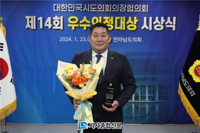 [½Ã»çÁ¾ÇսŹ® = ¿À½ÂÅà ±âÀÚ] Àü³²µµÀÇȸ ¼Õ³²ÀÏ µµÀÇ¿ø(´õºÒ¾î¹ÎÁִ硤¿µ¾Ï2)ÀÌ 1¿ù 23ÀÏ ¿¸° ´ëÇѹα¹½ÃµµÀÇȸÀÇÀåÇùÀÇȸ°¡ ÁÖ°üÇÏ´Â ¡®Á¦14ȸ ¿ì¼öÀÇÁ¤´ë»ó¡¯¿¡¼ ¿ì¼ö ÀÇ¿øÀ¸·Î ¼±Á¤µÆ´Ù.
