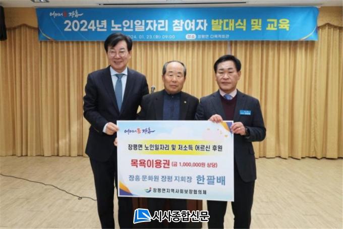 À̳¯ ¹ß´ë½Ä¿¡¼´Â ÇÑÆÈ¹è ÀåÈ﹮ȿø ÀåÆòÁöȸÀåÀÌ ³ëÀÎÀÏÀÚ¸® ¾î¸£½ÅµéÀÇ °Ç°Çϰí Ȱ±âÂù ÀÏÀÚ¸® »ç¾÷À» À§ÇÏ¿© 100¸¸¿ø »ó´çÀÇ ¸ñ¿åÀÌ¿ë±ÇÀ» ±âŹÇß´Ù.