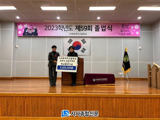 [½Ã»çÁ¾ÇսŹ® = °í¼º¹Î ±âÀÚ] ¼±ÍÆ÷¿©ÀÚ°íµîÇб³(±³Àå ¾ç¼ø¿ì)´Â Áö³ 24ÀÏ ÁøÇàµÈ Á¦59ȸ Á¹¾÷½Ä¿¡¼ ±è±Ý¼÷ ±³°¨À¸·ÎºÎÅÍ Çб³¹ßÀü±â±Ý 500¸¸¿øÀ» Àü´Þ¹Þ¾Ò´Ù°í ÀüÇß´Ù.