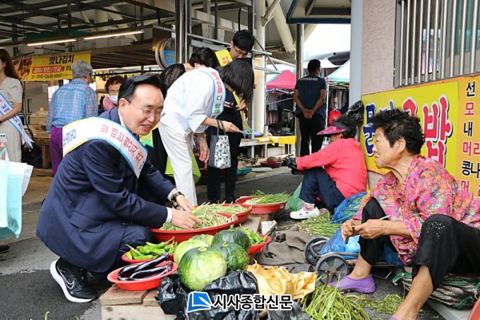 »çÁø¼³¸í : À±º´Å ½ÃÀåÀÌ Áö³ÇØ Ãß¼® ¸íÀý Àü ³ªÁÖ¸ñ»ç°íÀ»½ÃÀå¿¡¼ ÀüÅë½ÃÀå À庸±â Çà»ç¿¡ Âü¿©ÇØ »óÀÎÀ» °Ý·ÁÇϰí ÀÖ´Ù.