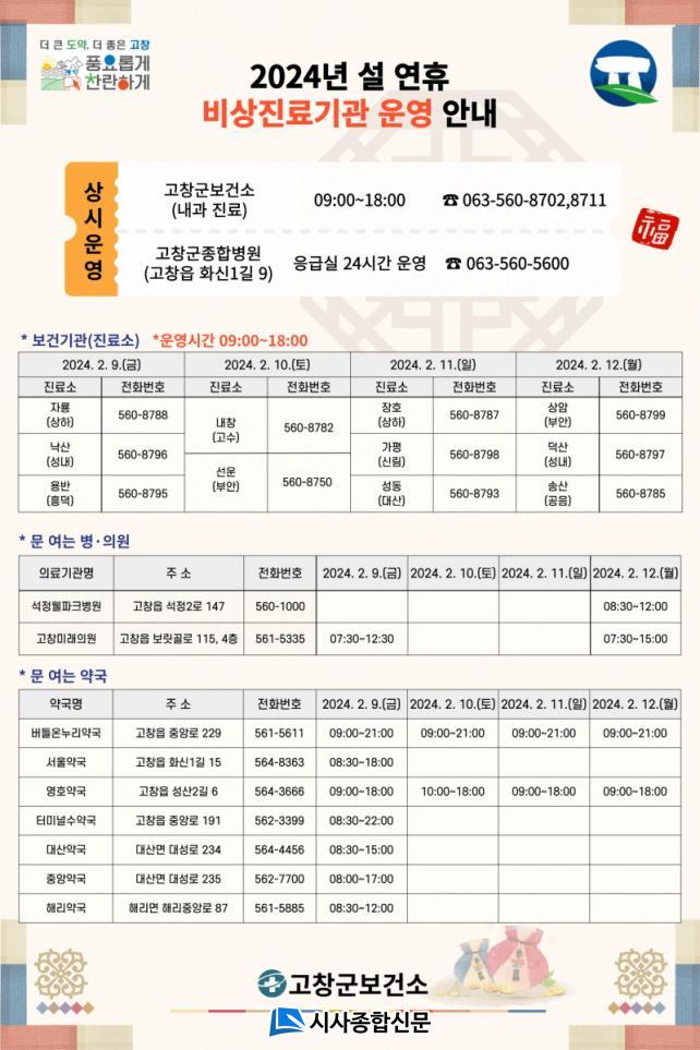 Áö¿ªÀÀ±ÞÀÇ·á±â°üÀÎ °íâÁ¾ÇÕº´¿øÀº ÀÀ±ÞȯÀÚ ¹ß»ýÀ» ´ëºñÇÏ¿© 24½Ã°£ ÀÀ±Þ½ÇÀ» ¿î¿µÇϰí, º¸°Ç±â°ü 12°³¼Ò, º´¡¤ÀÇ¿ø 2°³¼Ò, ¹® ¿©´Â ¾à±¹ 7°³¼Ò¸¦ ÀÏÀÚº°·Î ÁöÁ¤ ¿î¿µÇÒ °èȹÀÌ´Ù. ƯÈ÷, °íⱺº¸°Ç¼Ò¸¦ ºñ·ÔÇÑ º¸°ÇÁø·á¼Ò(11°³¼Ò)´Â ¼³ ¿¬ÈޱⰣ ¿ÀÀü 9½ÃºÎÅÍ ¿ÀÈÄ 6½Ã±îÁö Á¤»óÁø·á¸¦ ½Ç½ÃÇÑ´Ù. ±Ç¿ªº° Áø·áÁö¿ªÀ» ³ª´©¾î ¹Î°£ ÀÇ·á±â°üÀÇ Áø·á °ø¹éÀ» ÃÖ¼ÒÈÇÒ ¹æÄ§ÀÌ´Ù.