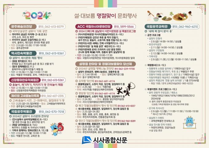 ±¤ÁÖ±¤¿ª½Ã(½ÃÀå °±âÁ¤)´Â ¼³ ¿¬ÈÞ(9~12ÀÏ)¿Í ´ëº¸¸§(23~25ÀÏ)À» ¸Â¾Æ ½Ã¹Î¡¤±Í¼º°´µéÀÌ Á¤°Ü¿î ¸íÀýÀ» º¸³¾ ¼ö ÀÖµµ·Ï ¼¼½Ãdz¼ÓÇà»ç, ±¹¾Ç»ó¼³°ø¿¬, Á¤¿ù´ëº¸¸§¸ÂÀÌ ´ç»êÁ¦, °í½Î¿ò³îÀÌÃàÁ¦ µî ¹®ÈÇà»ç°¡ ±¤ÁÖ °÷°÷¿¡¼ ¿¸°´Ù°í 4ÀÏ ¹àÇû´Ù.