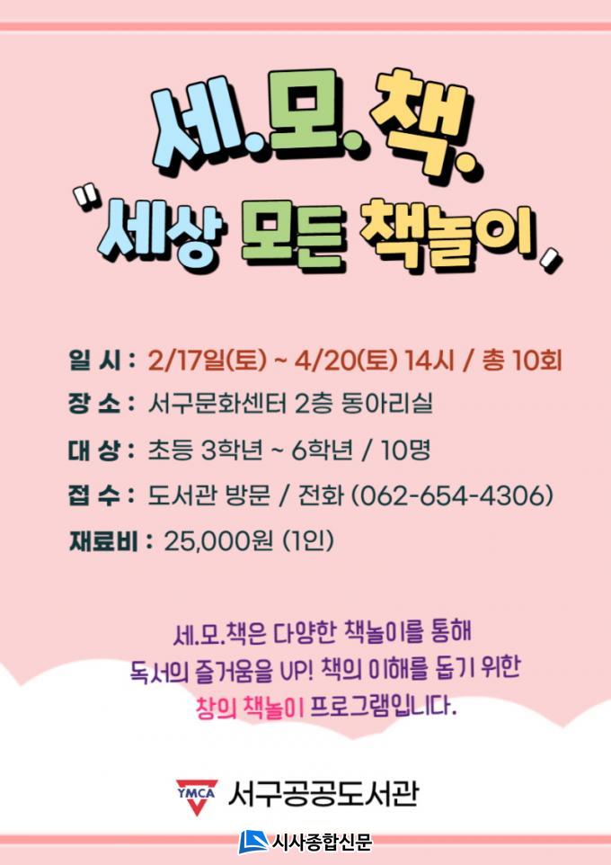 | ±¤ÁÖ ¼±¸°ø°øµµ¼°ü, ¼¼.¸ð.Ã¥ - ¼¼»ó ¸ðµç Ã¥³îÀÌ ÇÁ·Î±×·¥ ¿î¿µ 2¿ù17ÀϺÎÅÍ 4¿ù20ÀϱîÁö, ¸ÅÁÖ Åä¿äÀÏ ÃÑ 10ȸ ÁøÇà