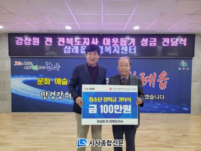 [½Ã»çÁ¾ÇսŹ® = ±è¿¬Èñ ±âÀÚ] °»ó¿ø Àü ÀüºÏµµÁö»ç°¡ ¿ÏÁÖ±º »ï·ÊÀ¾¿¡ »ýȰÀÌ ¾î·Á¿î ÀÌ¿ôµé¿¡°Ô ½á´Þ¶ó¸ç ÀÌ¿ôµ½±â ¼º±Ý 100¸¸ ¿øÀ» ±âŹÇß´Ù.