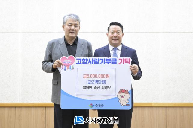 [½Ã»çÁ¾ÇսŹ® = ±è¿¬Èñ ±âÀÚ] ¼øÃ¢±ºÀº 5ÀÏ ¼øÃ¢ Ãâ½Å ±â¾÷ÀÎ Á¤¸í¿À¾¾°¡ °íÇâ»ç¶û±âºÎ±Ý °³ÀÎ ÃÖ°í¾×ÀÎ 500¸¸¿øÀ» ±âŹÇß´Ù°í ¹àÇû´Ù.