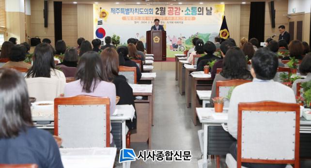 | 2024³â 2¿ù 5ÀÏ Á¦ÁÖÆ¯º°ÀÚÄ¡µµÀÇȸ ´ëȸÀǽǿ¡¼´Â 2¿ù °ø°¨, ¼ÒÅëÀÇ ³¯ Çà»ç°¡ ¿·È´Ù. |