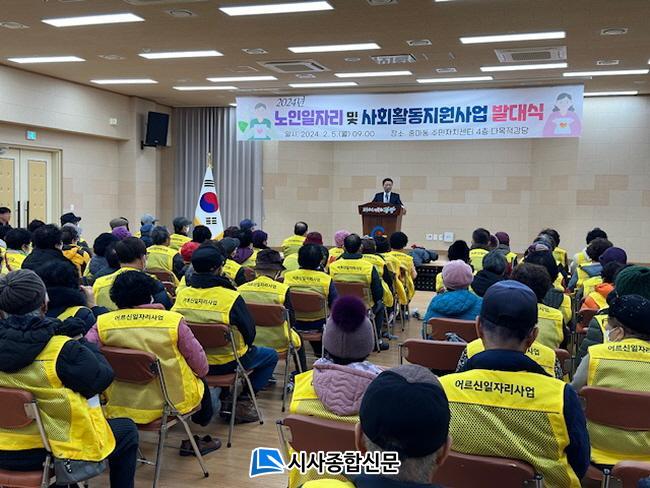 À̳¯ ¹ß´ë½Ä¿¡´Â ³ëÀÎÀÏÀÚ¸® ¹× »çȸȰµ¿Áö¿ø»ç¾÷ Á߸¶µ¿ Âü¿©ÀÚ 90¸íÀÌ Âü¼®ÇÑ °¡¿îµ¥ 2024³â »ç¾÷ÃßÁø ¹æÇâÀ» ¼³¸íÇÏ°í ¾ÈÀü±³À° µîÀ» ½Ç½ÃÇß´Ù.