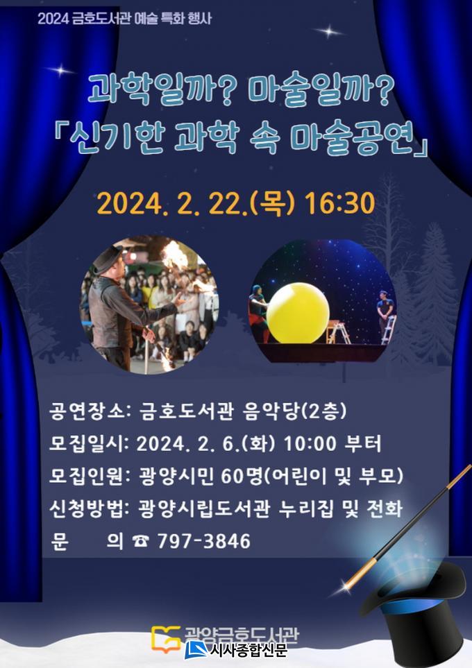 ƯÈ÷, À̹ø °ø¿¬Àº Ãʵî ÀúÇгâ ÀÌÇÏ ¾î¸°ÀÌ¿Í ºÎ¸ðµéÀ» À§ÇØ °úÇÐ ¿ø¸®¸¦ °áÇÕÇØ ¹«´ë¿¡¼ À½¾Ç°ú ¿¹¼úÀû ¿¬Ãâ±îÁö °Á¶ÇÑ º¹ÇÕ ¸¶¼ú °ø¿¬À¸·Î Âü¼®ÇÑ ¾î¸°ÀÌ¿Í ºÎ¸ðµé¿¡°Ô °¨ÅºÀ» ÀھƳ»°í Ưº°ÇÑ ÇöÀå ÇнÀÀÇ ±âȸ°¡ µÉ °ÍÀ¸·Î ±â´ëµÈ´Ù.