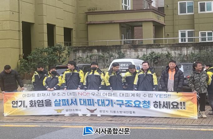 ±¤¾ç¼Ò¹æ¼ ¹ÚÈñ¼· ´ëÀÀ±¸Á¶°úÀåÀº ¡°¾ÆÆÄÆ® ÈÀç½Ã ´Ù¼öÃþÀ¸·Î ¿¬¼ÒÈ®´ë °¡´É¼ºÀÌ ³·À½À¸·Î ¹ßÈÃþ°ú °Å¸®°¡ ÀÖ´Â °æ¿ì ¹«¸®ÇÑ ´ëÇǺ¸´Ù »óȲº° ´ëÇÇ Àü·«(Çdz, ±¸Á¶¿äû, ´ë±â µî)ÀÌ ÇÊ¿äÇÔÀ¸·Î À̹ø ±âȸ¿¡ ³» Áý¿¡¼ ÈÀç½Ã ¾î¶»°Ô ÇൿÇÒ °ÍÀÎÁö ´Ù½Ã ÇÑ ¹ø »ý°¢ÇØ º¼ ¼ö ÀÖ´Â ±âȸ°¡ µÇ±â¸¦ ¹Ù¶ó¸ç ÇâÈÄ Áö¼ÓÀûÀ¸·Î È«º¸ ¹× ±³À°À» ½Ç½ÃÇÒ ¿¹Á¤ÀÌ´Ù.¡±°í ¸»Çß´Ù.