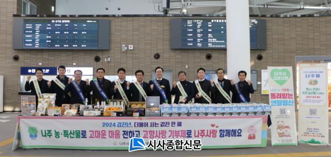 À̳¯ Çà»ç¿¡´Â À±º´Å ³ªÁÖ½ÃÀå, ÀÌ»ó¸¸ ³ªÁÖ½ÃÀÇȸ ÀÇÀå, ½Å°æÈÆ ³óÇùÁß¾Óȸ ³ªÁÖ½ÃÁöºÎÀåÀ» ºñ·ÔÇÑ Áö¿ª³óÇù Á¶ÇÕÀå µî 20¿© ¸íÀÌ Âü¼®ÇØ ³ªÁÖ¹è¿Í ¿Õ°ÇÀÌŽ³½½Ò µîÀ» ³ª´²ÁÖ¸ç Áö¿ª ³ó¡¤Æ¯»ê¹°À» ¾Ë·È´Ù.