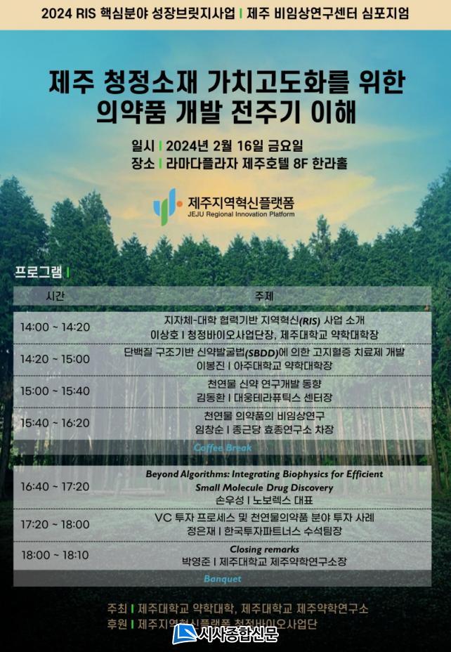 ½ÉÆ÷Áö¾öÀ» ÁÖ°üÇÏ´Â Á¦ÁÖ¾àÇבּ¸¼Ò ¹Ú¿µÁØ ±³¼ö(Á¦ÁÖ´ë ¾àÇдëÇÐ)´Â ¡°À̹ø RIS ¼ºÀåºê¸´Áö »ç¾÷À» ÅëÇØ Á¦ÁÖ´ëÇб³ÀÇ ÀÇ´ë, ¾à´ë, ¼öÀÇ´ë ¼Ò¼Ó 15ÀÎÀÇ ¿¬±¸Áøµé·Î ±¸¼ºÇÑ ºñÀÓ»ó ±âÃÊ¿¬±¸ Ç÷§ÆûÀÇ ¼º°ú¸¦ °øÀ¯Çϰí, À̸¦ Ȱ¿ëÇÑ Áö¿ª »ê¾÷ü¿ÍÀÇ Çù¾÷À» ÅëÇÑ À¯È¿, ¼±µµ, Èĺ¸¹°ÁúÀÇ ¹ß±¼ ¹× õ¿¬¹° ÀǾàǰ °³¹ßÀÇ ±â¹ÝÀ» ´ÙÁö°íÀÚ ÇÑ´Ù.¡±¸ç ¡°À̹ø ½ÉÆ÷Áö¾öÀº Á¦ÁÖ Áö¿ªÀÇ Ãµ¿¬¹°À» ±â¹ÝÀ¸·Î ÇÑ ÀǾàǰ °³¹ß¿¡ ÀÖ¾î Áß¿äÇÑ ÀüȯÁ¡ÀÌ µÉ °Í¡±À̶ó°í ¹àÇû´Ù.