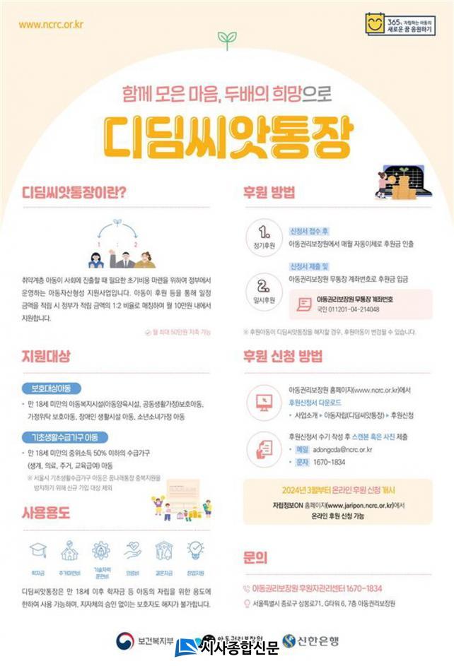 ¾Æµ¿¹ß´ÞÁö¿ø°èÁ´ À§Å¹°¡Á¤․¾Æµ¿¾çÀ°½Ã¼³ µî¿¡¼ ÀÚ¶ó°í ÀÖ´Â º¸È£´ë»ó ¾Æµ¿°ú ±âÃÊ»ýȰ¼ö±Þ°¡±¸ µî Àú¼Òµæ ¾Æµ¿ÀÌ »çȸ¿¡ ÁøÃâÇÒ ¶§ ºó°ïÀÇ ´ë¹°¸²À» ÃÖ¼ÒÈÇϰí, »çȸÁøÃâÀÇ Ãʱâºñ¿ëÀ» ¸¶·ÃÇÒ ¼ö ÀÖ°Ô ÀÚ»ê Çü¼ºÀ» Áö¿øÇÏ´Â »ç¾÷ÀÌ´Ù.