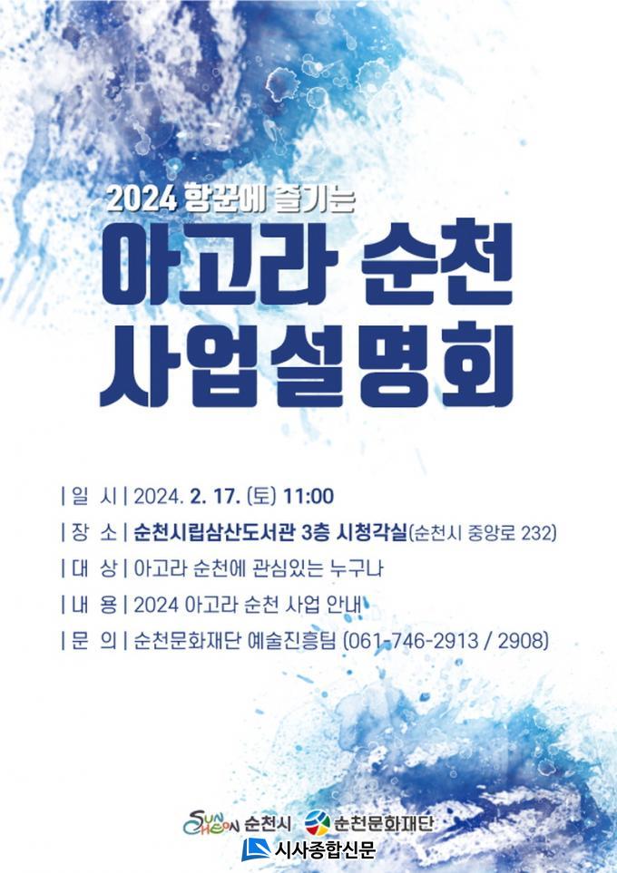 À̹ø »ç¾÷¼³¸íȸ´Â 2024³â ¾Æ°í¶ó ¼øÃµ ¿î¿µ¹æ¾È¿¡ ´ëÇÑ Á¤º¸¸¦ Á¦°øÇϰí ÇöÀå ÁúÀÇÀÀ´äÀ» ÅëÇØ »ç¾÷ÀÇ ÀÌÇØµµ¸¦ ³ôÀ̰íÀÚ ¸¶·ÃµÆ´Ù. À۳⵵ »ç¾÷¼º°ú, 24³âµµ »ç¾÷ ¼Ò°³ ¹× ÁßÁ¡ ÃßÁø ¹æÇâ, °ø¿¬ÆÀ ¼±Á¤¿¡ ´ëÇÑ ¾È³», ÁúÀÇÀÀ´ä ¼øÀ¸·Î ÁøÇàµÉ ¿¹Á¤ÀÌ´Ù.