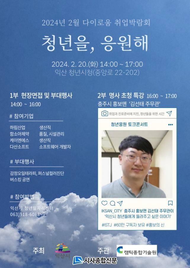 ½Ã´Â ¿À´Â 20ÀÏ ¿ÀÈÄ 2~5½Ã±îÁö ´ÙÀ̷οò Ãë¾÷¹Ú¶÷ȸ¸¦ °³ÃÖÇØ 4°³ ±â¾÷ÀÇ 1:1 ÇöÀå ¸éÁ¢°ú ÃæÁֽà ±è¼±Å ÁÖ¹«°ü ÃÊû ÅäÅ©ÄܼƮ¸¦ ÁøÇàÇÑ´Ù°í 15ÀÏ ¹àÇû´Ù.