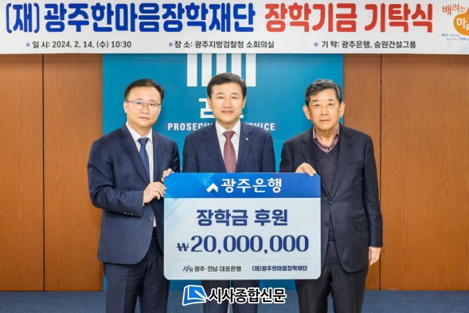 [½Ã»çÁ¾ÇսŹ® = ¿À½ÂÅà ±âÀÚ] ±¤ÁÖÀºÇà(ÀºÇàÀå °íº´ÀÏ)Àº ÃÖ±Ù ±¤ÁÖÁö¹æ°ËÂûû¿¡¼ °íº´ÀÏ ±¤ÁÖÀºÇàÀå°ú ¹ÚÁ¾±Ù ±¤ÁÖÁö¹æ°ËÂûû °Ë»çÀå, ÇÑ»ó¿ø (Àç)±¤ÁÖÇѸ¶À½ÀåÇÐÀç´Ü ÀÌ»çÀåÀÌ Âü¼®ÇÑ °¡¿îµ¥, Áö¿ª¿¡ ¼Ò¿ÜµÈ û¼Ò³âµéÀÇ Çо÷ Áö¿øÀ» À§ÇØ (Àç)±¤ÁÖÇѸ¶À½ÀåÇÐÀç´Ü¿¡ 2õ¸¸¿øÀÇ ÀåÇбÝÀ» Àü´ÞÇß´Ù°í ¹àÇû´Ù.