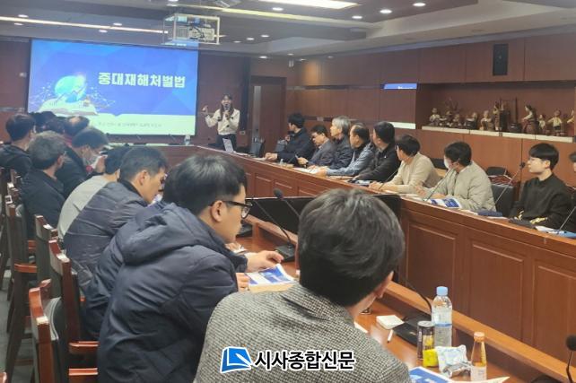 ƯÈ÷, À̳¯Àº °ü³» 5ÀÎ ÀÌ»ó 49ÀÎ ¹Ì¸¸ ±â¾÷ü »ç¾÷ÁÖ, ¾ÈÀüº¸°Ç°ü¸® ´ã´çÀÚ µî 40¿©¸íÀÌ Âü¼®ÇÑ °¡¿îµ¥ Áß´ëÀçÇØÃ³¹ú¹ý ÀÌÇØ ¹× ¾ÈÀüº¸°Ç°ü¸®Ã¼°è ±¸Ãà ¹æ¹ý¿¡ ´ëÇÑ ±³À°½Ã°£À» °¡Á® ¼Ò±Ô¸ð »ç¾÷Àå¿¡ ´ëÇÑ ÀÌÇØµµ¸¦ ³ôÀ̰í Çù·Â¹æ¾ÈÀ» ³íÀÇÇÏ´Â ½Ã°£À» °¡Á³´Ù.