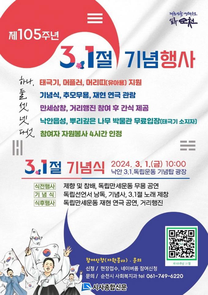 ¼øÃµ½Ã °ü°èÀÚ´Â ¡°¿Ã ÇØ´Â ÇØ¹æ°ú ±¹¹ÎÁÖ±ÇÀ» °¡Á®¿Â »ïÀϿ 105ÁÖ³â µÇ´Â ÇØ¡±¶ó¸ç ¡°Á¶±¹ÀÇ ±¤º¹À» À§ÇØ Çå½ÅÇϽе¶¸³À¯°øÀÚ¿Í À¯°¡Á· ±×¸®°í ½Ã¹Î ¸ðµÎ°¡ ±×³¯ÀÇ ÇÔ¼ºÀ» ÀçÇöÇÏ´Â ±â³äÇà»ç¸¦ ÁغñÇßÀ¸´Ï ¸¹Àº ½Ã¹ÎµéÀÌ Âü¼®ÇÏ±æ ¹Ù¶õ´Ù¡±°í ¸»Çß´Ù.
