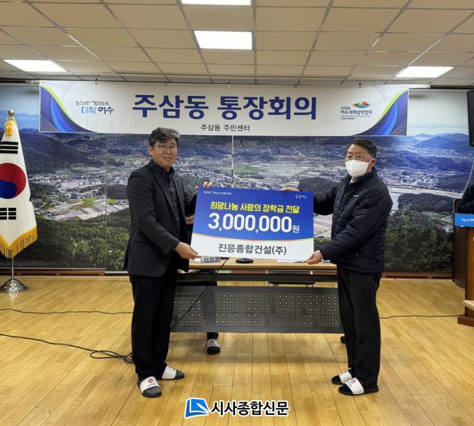 [½Ã»çÁ¾ÇսŹ® = ¿À½ÂÅà ±âÀÚ] ¿©¼ö ÁøÀÀÁ¾ÇհǼ³¢ß(´ëÇ¥ ¹éÁ¾¿ø)Àº Áö³ 20ÀÏ Áֻﵿ Àú¼Òµæ°¡Á¤ ÇлýµéÀ» À§ÇÑ Èñ¸Á ³ª´® ÀåÇÐ±Ý 300¸¸ ¿øÀ» ÁֻﵿÁֹμ¾ÅÍ¿¡ Àü´ÞÇß´Ù.
