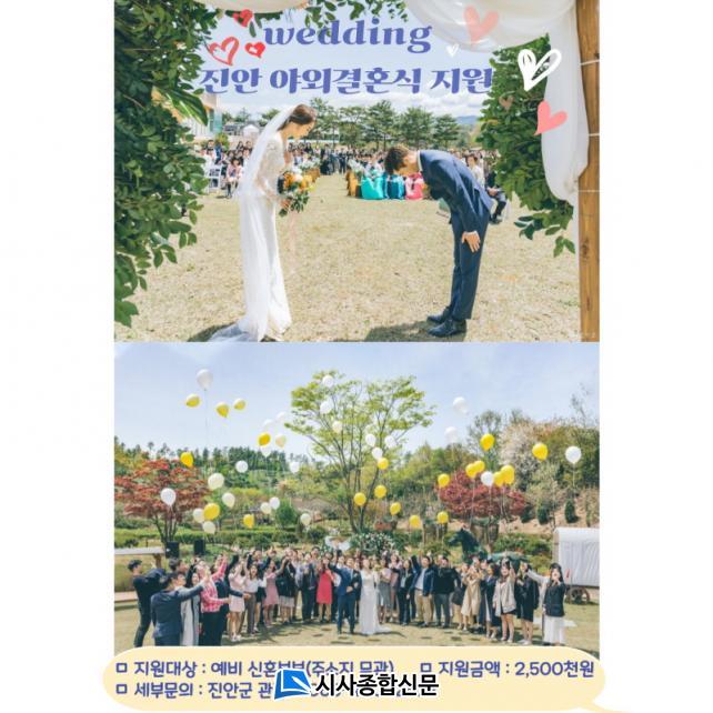 Áø¾È±º ÁÖ¿ä °ü±¤Áö¿¡¼ °áÈ¥ÇÏ´Â ½ÅÈ¥ºÎºÎÀÇ »çÀü ½Åû¿¡ µû¶ó ¿þµù¾ÆÄ¡, Ä«Æê, ²ÉÀå½Ä µî °áÈ¥½ÄÀå ¼³Ä¡, Àǻ󡤸ÞÀÌÅ©¾÷, ½º³À»çÁø ¹× ¾ß¿ÜÃÔ¿µ, ÇǷο¬ ºñ¿ë Áß »ç¾÷ ´ë»óÀÚ ¼±Åÿ¡ µû¶ó 250¸¸¿øÀÇ Áö¿ø Çѵµ ¹üÀ§¿¡¼ ±× ºñ¿ëÀ» Áö¿øÇÑ´Ù.