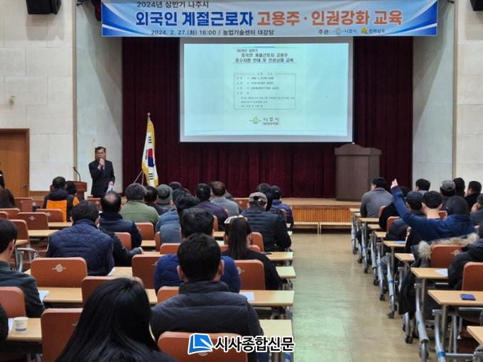 27ÀÏ ³ªÁֽÿ¡ µû¸£¸é ³ó¾÷±â¼ú¼¾ÅÍ ´ë°´ç¿¡¼ 122³ó°¡¸¦ ´ë»óÀ¸·Î ½Ç½ÃÇÑ À̹ø ±³À°Àº ¿Ü±¹ÀÎ °èÀý±Ù·ÎÀÚ °í¿ë³ó°¡ Áؼö»çÇ× »Ó ¾Æ´Ï¶ó ¿Ü±¹ÀÎ °èÀý±Ù·ÎÀÚÀÇ ÀαǺ¸È£ °È, Æø·Â ¹× ÀαÇÄ§ÇØ ¿¹¹æÀ» À§ÇØ ¸¶·ÃµÆ´Ù.