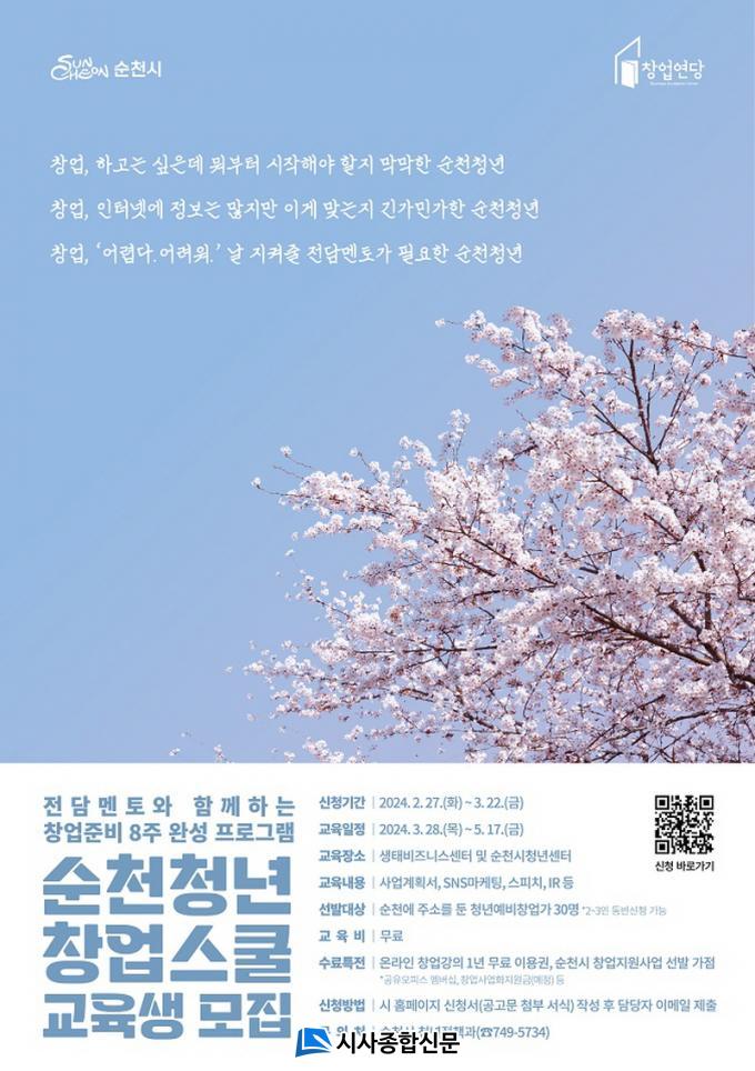 ¸ðÁý´ë»óÀº ¼øÃµ½Ã¿¡ ÁÖ¼Ò¸¦ µÎ°í »ç¾÷ÀÚµî·ÏÀ» ÇÏÁö ¾ÊÀº û³âÀ̸ç, ¸ðÁýÀοøÀº ¼±Âø¼ø 30¸íÀÌ´Ù. ±³À°ºñ´Â ¹«·áÀ̸ç, ±³À° ¼ö·á»ý¿¡°Ô´Â ¼ö·á ÈÄ 1³â µ¿¾È ¿Â¶óÀΠâ¾÷°Á ¹«·á ÀÌ¿ë±Ç(¾ð´õµ¶½º ¾ÆÄ«À̺ê)°ú ¼øÃµ½Ã â¾÷Áö¿ø»ç¾÷ Æò°¡ ½Ã °¡Á¡ ÇýÅà µîµµ Á¦°øÇÒ ¿¹Á¤ÀÌ´Ù.À̹ø ÇÁ·Î±×·¥Àº ¿À´Â 3¿ù 28ÀÏÀ» ½ÃÀÛÀ¸·Î 5¿ù 17ÀϱîÁö 8ÁÖ µ¿¾È ÁøÇàµÈ´Ù.