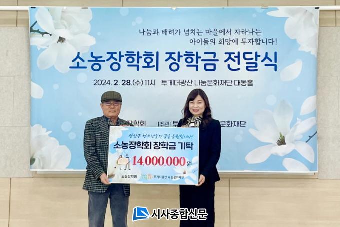 [½Ã»çÁ¾ÇսŹ® = ±è¿¬Èñ ±âÀÚ] ¼Ò³óÀåÇÐȸ(ȸÀå ±è¿ì¿¬)°¡ 28ÀÏ ±¤»ê±¸ Ãë¾à°èÃþ ¼¼´ë û¼Ò³âÀ» À§ÇÑ ÀåÇÐ±Ý 1400¸¸ ¿øÀ» Åõ°Ô´õ±¤»ê ³ª´®¹®ÈÀç´Ü¿¡ Àü´ÞÇß´Ù.