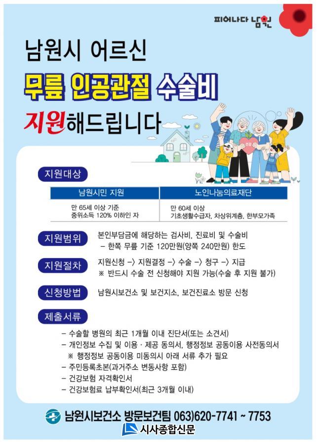 Áö¿ø´ë»óÀº Àΰø°üÀýġȯ¼ú(½½°üÀý) Áø´ÜÀ» ¹ÞÀº 65¼¼ÀÌ»ó ¾î¸£½ÅÀ¸·Î ½ÅûÀÏ ±âÁØ 1³âÀÌ»ó ³²¿ø½Ã¿¡ °ÅÁÖÇϰí, °Ç°º¸Çè·á ±âÁØ ÁßÀ§¼Òµæ 120%ÀÌÇÏÀÎ ÀÚÀÌ´Ù